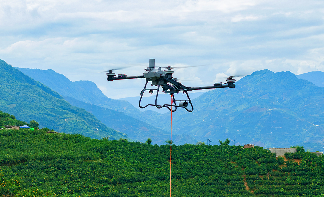 El dron agrícola T100, una creación pionera que se desarrolló durante doce años, cuenta con una carga útil máxima de 100 kg. Su eficiencia operativa se duplica, lo que permite múltiples aplicaciones, como pulverización, esparcimiento y elevación.